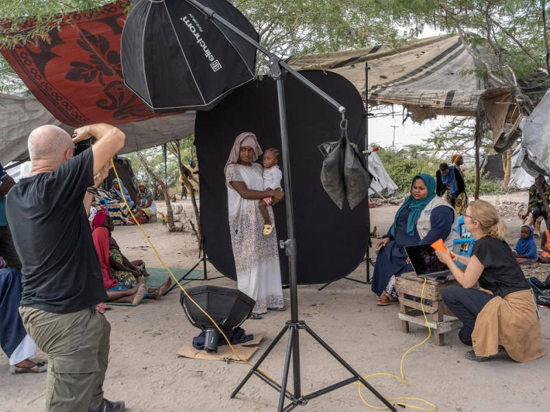 Ihr mobiles Fotostudio bauen die Schweizer Fotografen Monika Fischer und Mathias Braschler dort auf, wo die Protagonisten sind. Mal in einer mongolischen Jurte, mal in einer Lehmhütte im Irak oder, wie hier, im kenianischen Busch. Der neutrale Hintergrund gehört zum Konzept. "Wir wollen zeigen: Es sind alle gleich", sagt Fischer. Die "Displaced"-Dokumentation wurde vom UN-Welternährungsprogramm (WFP) und der Internationalen Organisation für Migration (IOM) unterstützt. stern-Autor Steffen Gassel begleitete die Recherchen in Deutschland, der Schweiz und im Irak. Alle Fotos, Videos und Texte des exklusiven stern-Reports finden Sie auf dieser Sonderseite.