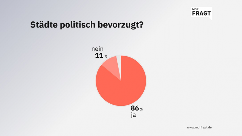 Das Fazit der MDRfragt-Gemeinschaft fällt ziemlich eindeutig aus: Die Politik ist zu sehr auf die Städte ausgerichtet. So sehen es fast neun von zehn Befragten.