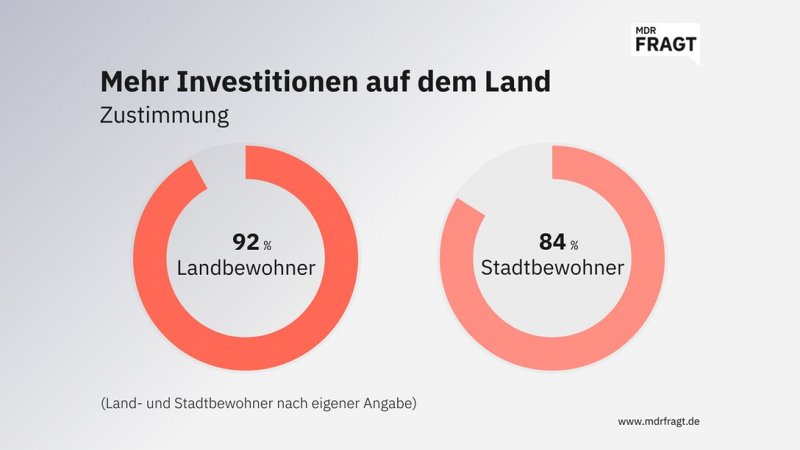 Bildrechte: MITTELDEUTSCHER RUNDFUNKDie Frage, wie viele Einrichtungen sich der ländliche Raum noch leisten kann, stellt sich für die allermeisten Befragten nicht. Neun von zehn finden: Es müsste mehr in den ländlichen Raum investiert werden. Das sehen mehrheitlich auch diejenigen Befragten so, die nach eigener Angabe selbst in einer Stadt leben.