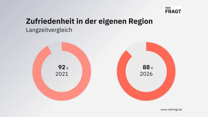 In der aktuellen MDRfragt-Umfrage zeigt sich eine Tendenz, die zuletzt mehrfach in politischen Meinungsumfragen beobachtet wurde: ein deutlicher Unterschied zwischen der Gesamteinschätzung und der eigenen, persönlichen Lage. Beim Stadt-Land-Thema bedeutet das: Die Befragten sehen grundlegende Probleme, sind aber sehr zufrieden mit dem eigenen Leben in ihrer Region, egal ob auf dem Land oder in der Stadt. Knapp neun von zehn Befragten antworten so. Und dieser Wert hat sich im Vergleich zu einer Befragung vor fünf Jahren auch nur geringfügig verändert.