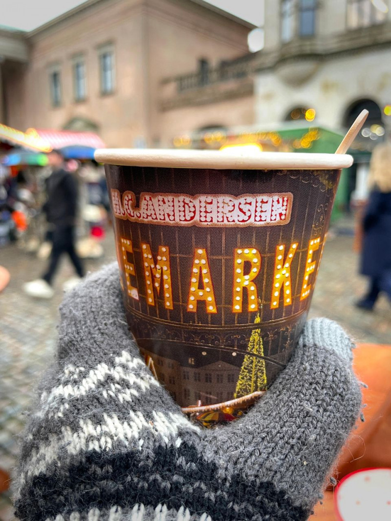 Die Öffnungszeiten der Weihnachtsmärkte mag manch einem Großstädter aus Deutschland etwas komisch vorkommen – aber der Julemarked schließt bis auf Freitag und Samstag schon um 19 Uhr. Auf dem Nytrov-Platz, auch im Herzen der dänischen Hauptstadt gelegen, soll man die Gelegenheit haben, ein Foto mit dem berühmten dänischen Dichter Hans Christian Andersen zu machen – nach ihm ist dieser Weihnachtsmarkt auch benannt. Wir haben ihn allerdings nicht getroffen – dafür den Weihnachtsmann. Er hat sogar eine eigene Hütte, bei der Kinder anklopfen und ihm ihre Wünsche verraten können. Fotos machen ist natürlich auch erlaubt. Zugegeben, da wir diesen Markt Sonntagvormittag besuchen, fehlen die schönen Lichter, die am Abend die Weihnachtsmärkte in kleine, hyggelige Wunderländchen verwandeln. Stände mit Edelsteinen, Weine, benannt nach nordischen Gottheiten, Mützen, Handschuhe sind hier neben Churros, Bratwürsten und einen Gløgg-Stand zu finden. Der erste übrigens, der auch eine alkoholfreie Version des dänischen Klassikers anbietet.